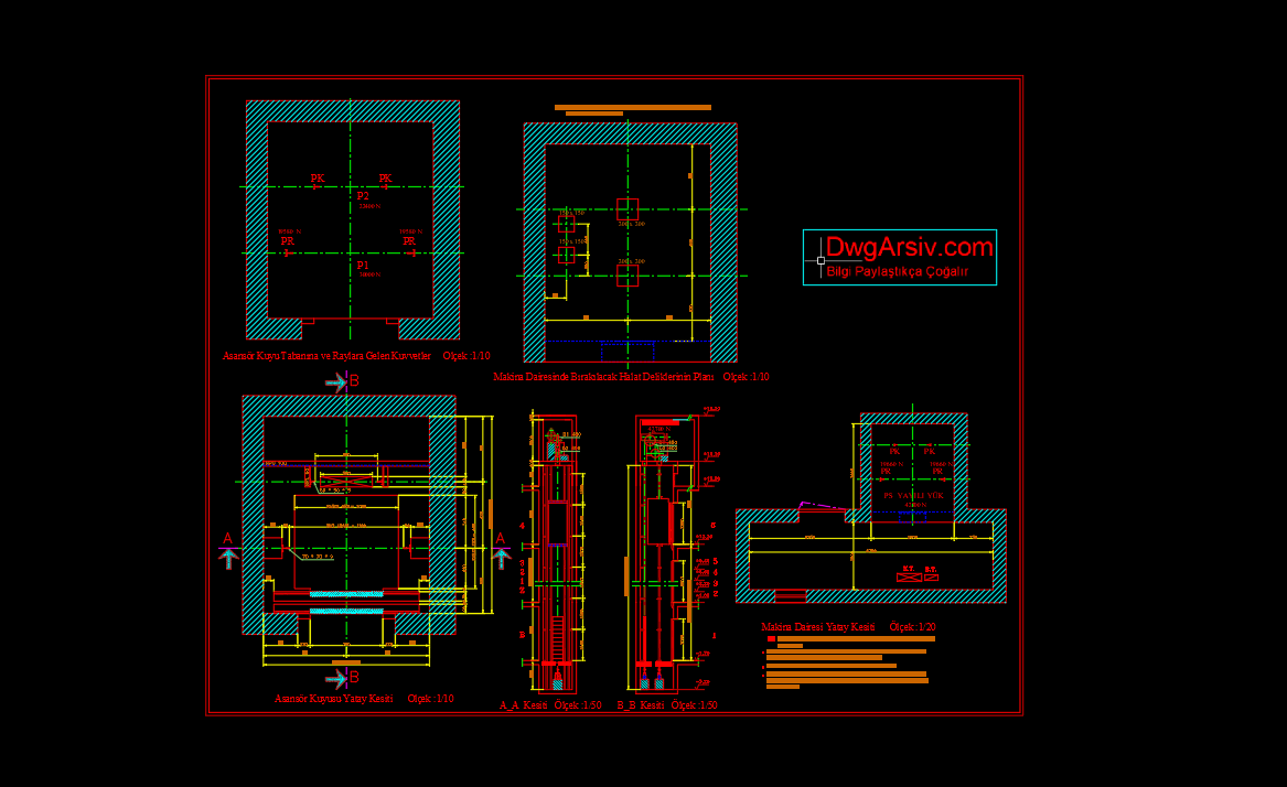 Asansör Plan, Kesit ve Görünüş – 001